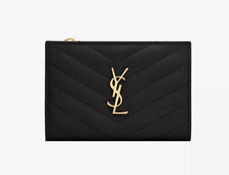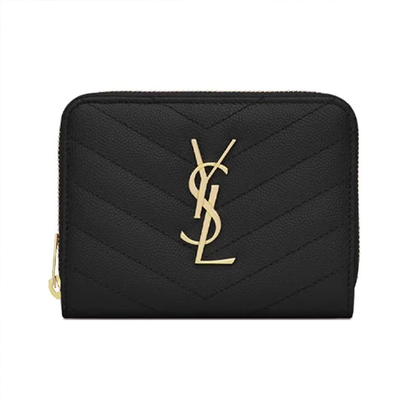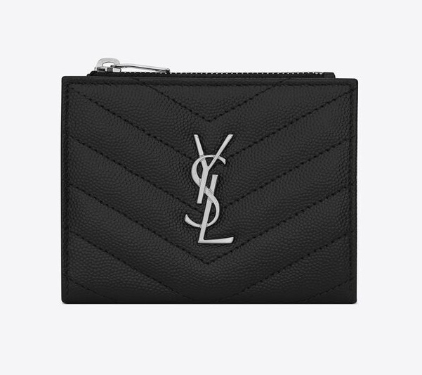【SAINT LAURENT】《新作限定♪めっちゃ便利♡》MONOGRAMキルティンググレインエンボスレザージッパー二つ折り財布【財布】