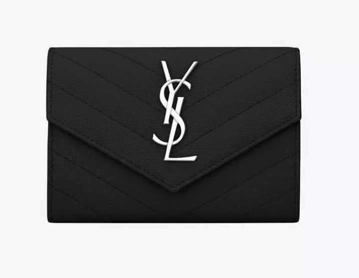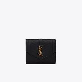 【SAINT LAURENT】モノグラム スモール エンベロープウォレットグレイン ド プードル/エンボスレザー