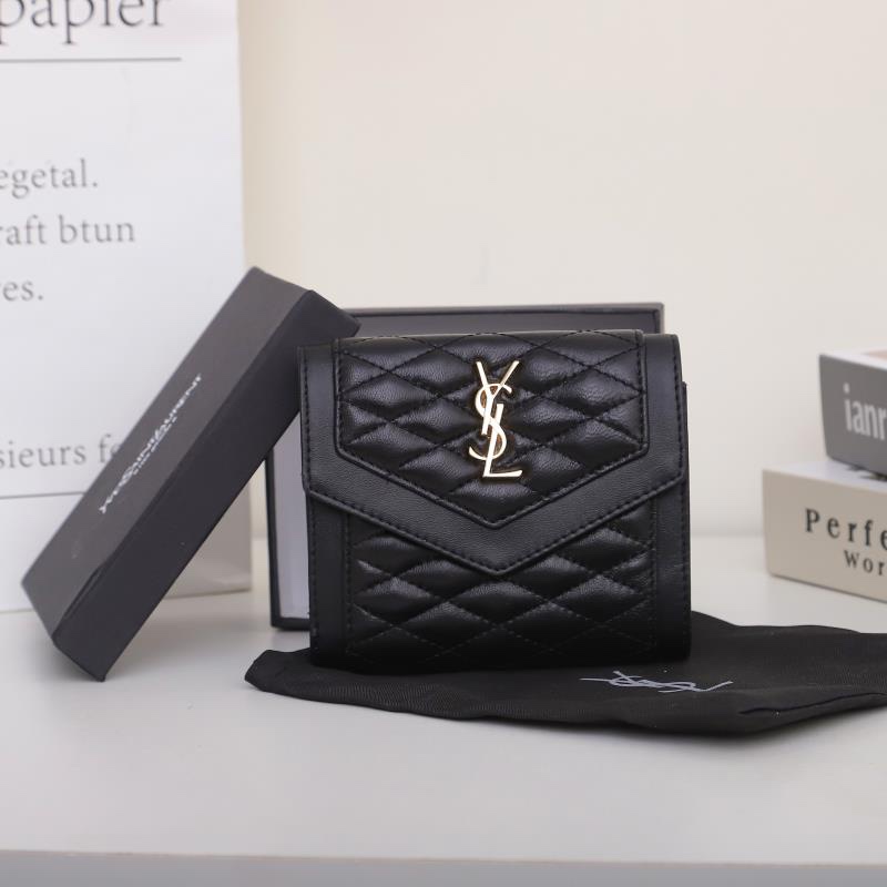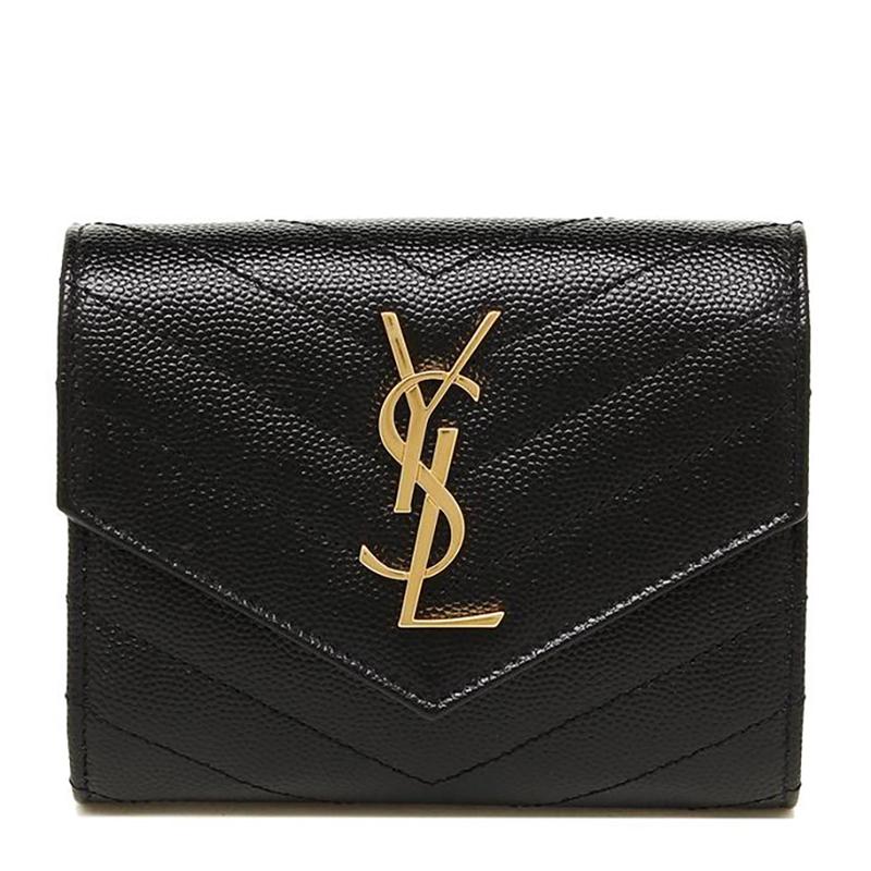 Saint Laurent GABYキルティング羊革ショート三つ折り財布