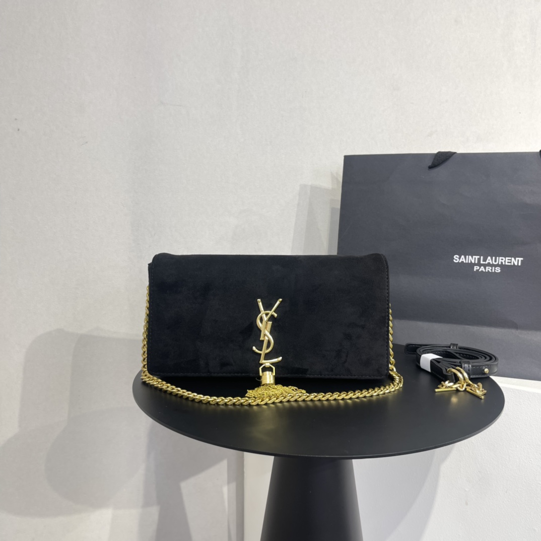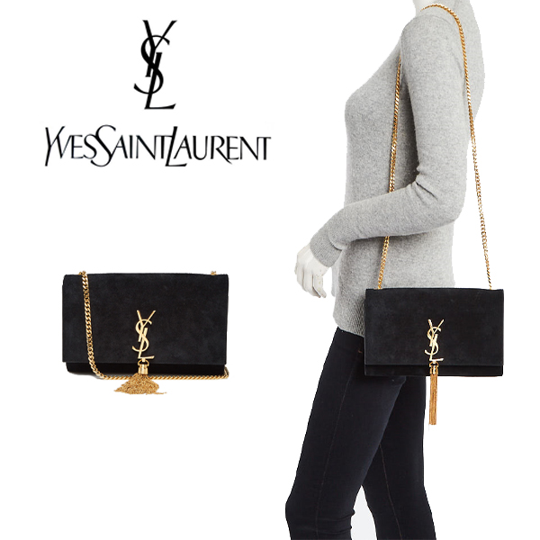 【SAINT LAURENT】イヴ・サンローラン ブラック スエード モノグラム ミディアム ケイト タッセル バッグ【バッグ】