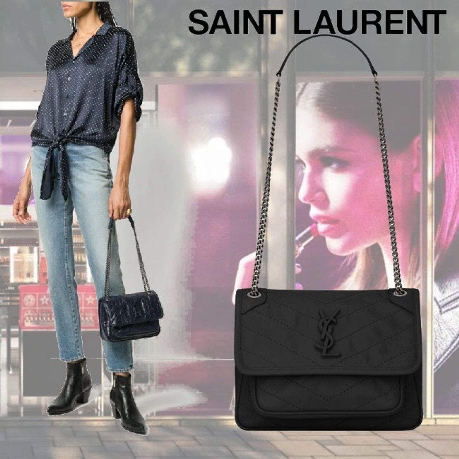 【SAINT LAURENT】ニキ ミディアム テクスチャードレザーバッグ【バッグ】