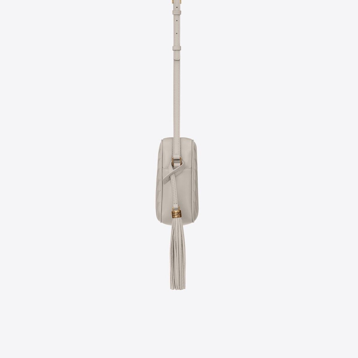 MONOGRAM SAINT LAURENTショルダーバッグ。中央にキルティングステッチ メタルYSLロゴが入っています。 長さ調節可能なレザーショルダーストラップと取り外し可能なレザータッセル。