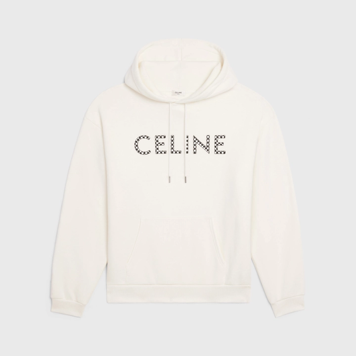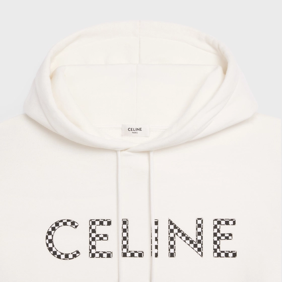 クルーネック、CELINE刻印入りストッパーと調節可能なストリングのフード付き