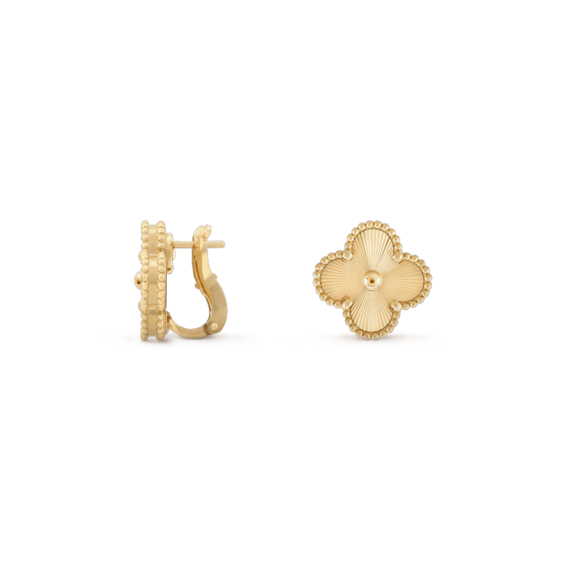 ヴィンテージ アルハンブラ イヤリング、ギヨシェ イエローゴールド。
