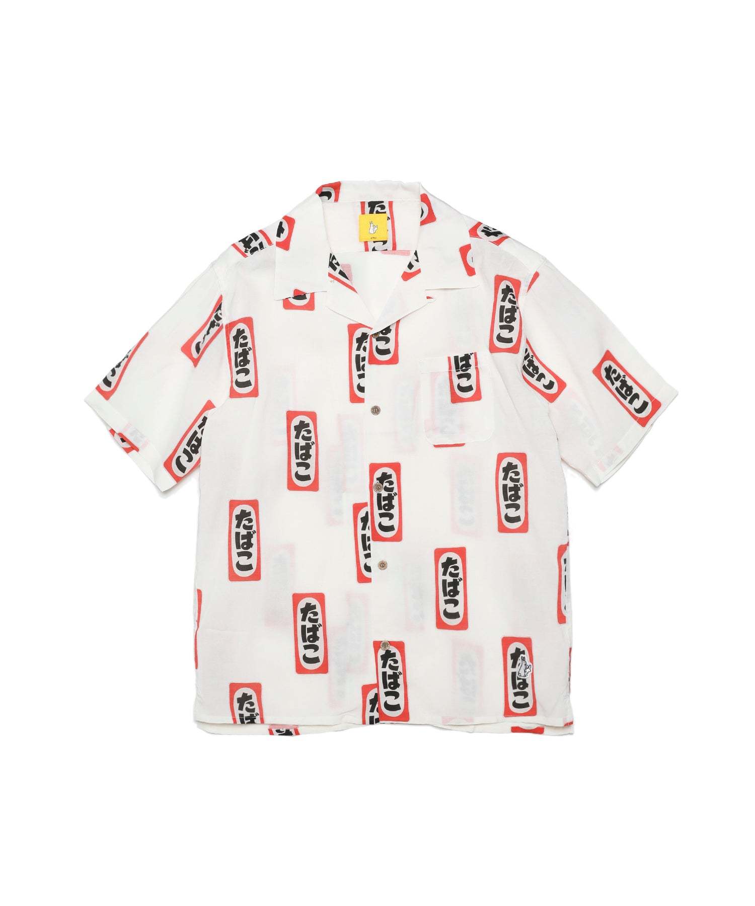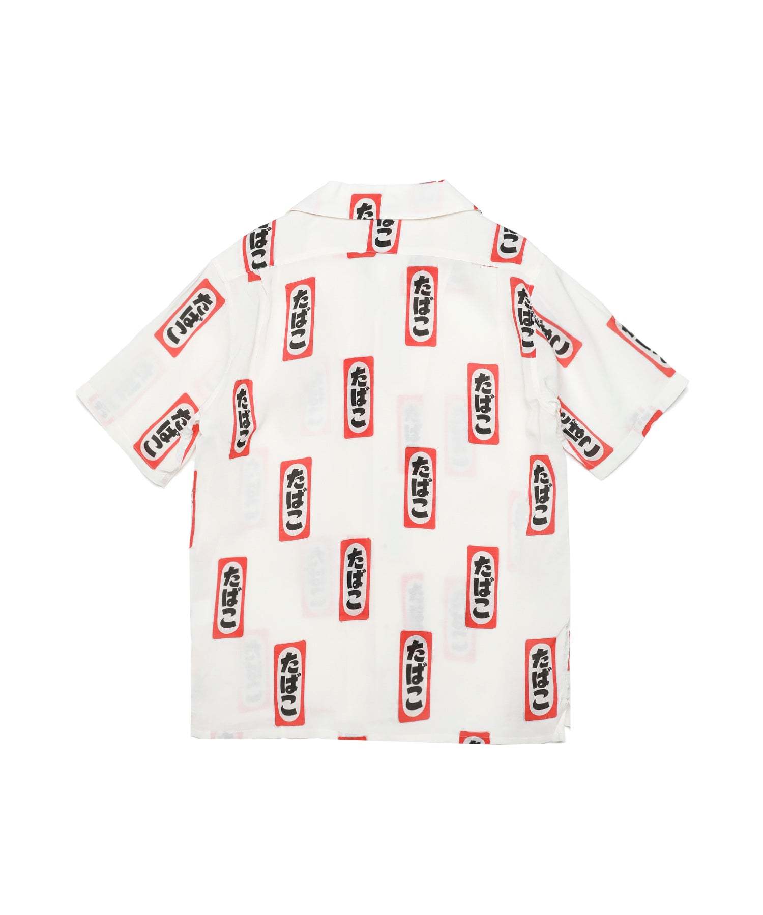 御守りのデザインでも取り入れられている「たばこ」のデザインをそのまま総柄で落とし込んだアロハシャツ。レーヨン素材特有の上品な光沢感と柔らかくラフな雰囲気が調和した一枚に仕上がっています。しっかりとした存在感があり、ボタンを閉めて開襟シャツのような着こなしから、オープンフロントでさらっと羽織っても楽しめるアイテムになっています。こちらは、同デザインのとセットアップでも楽しめます。
