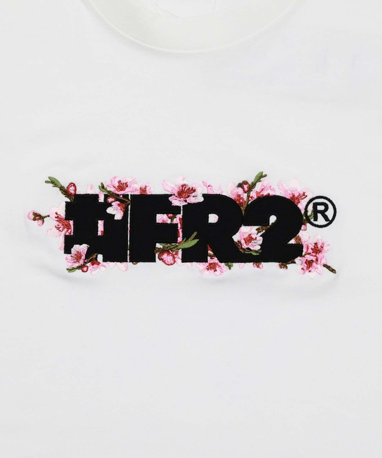フロントに季節感のある桜とロゴを組み合わせた刺繍を落とし込んだTシャツ。シンプルなデザインでコーディネートに取り入れやすい一枚。型番:FRC3711