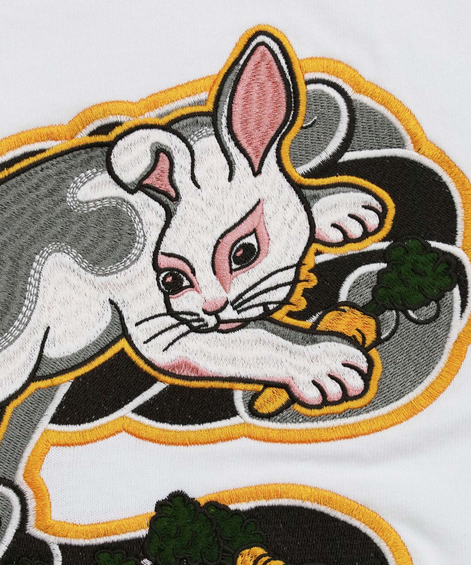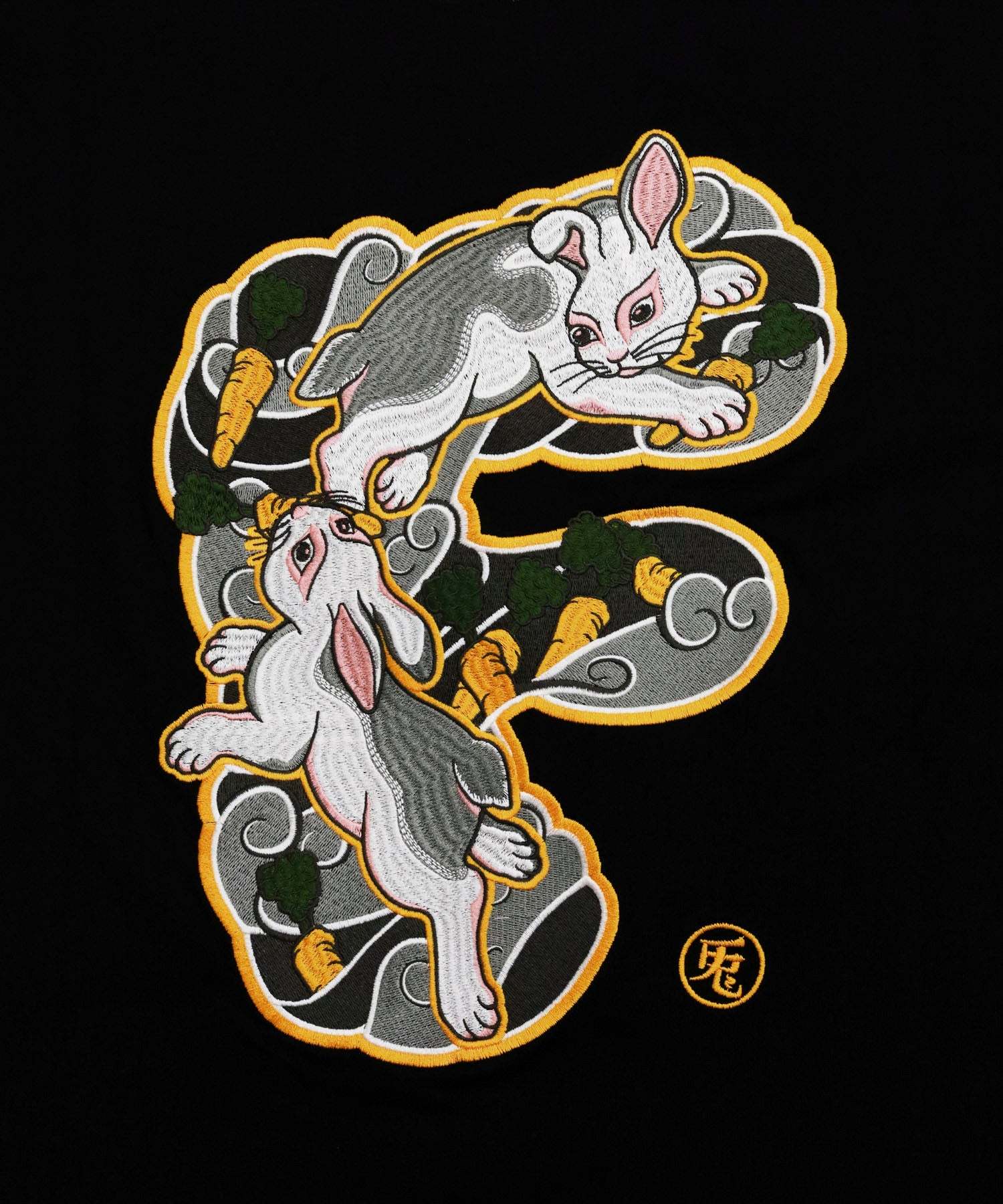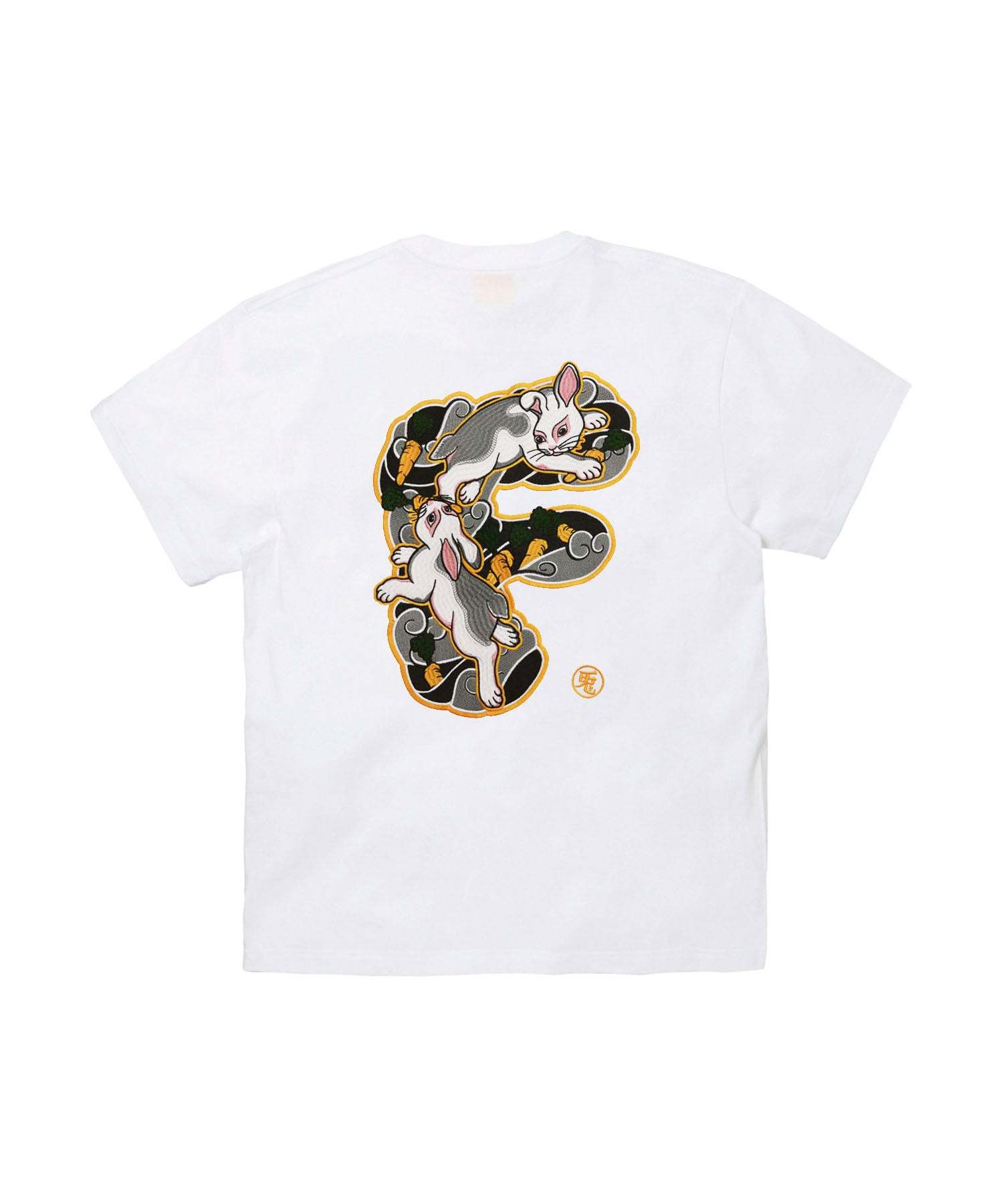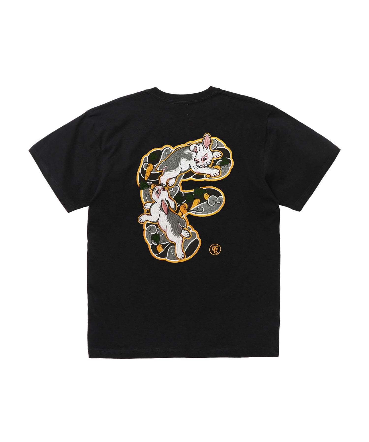 日本風情を感じるタッチのウサギのグラフィックをイニシャルでもあるFの文字の中に組み合わせ、バックに刺繍で落とし込んだTシャツ。フロントにはロゴを刺繍でオン。型番:FRC3796