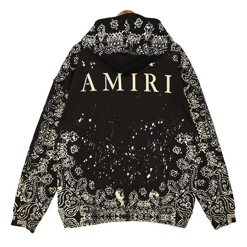 Amiri terry hoodie. Bleached paisley and graphic pattern printed throughout.