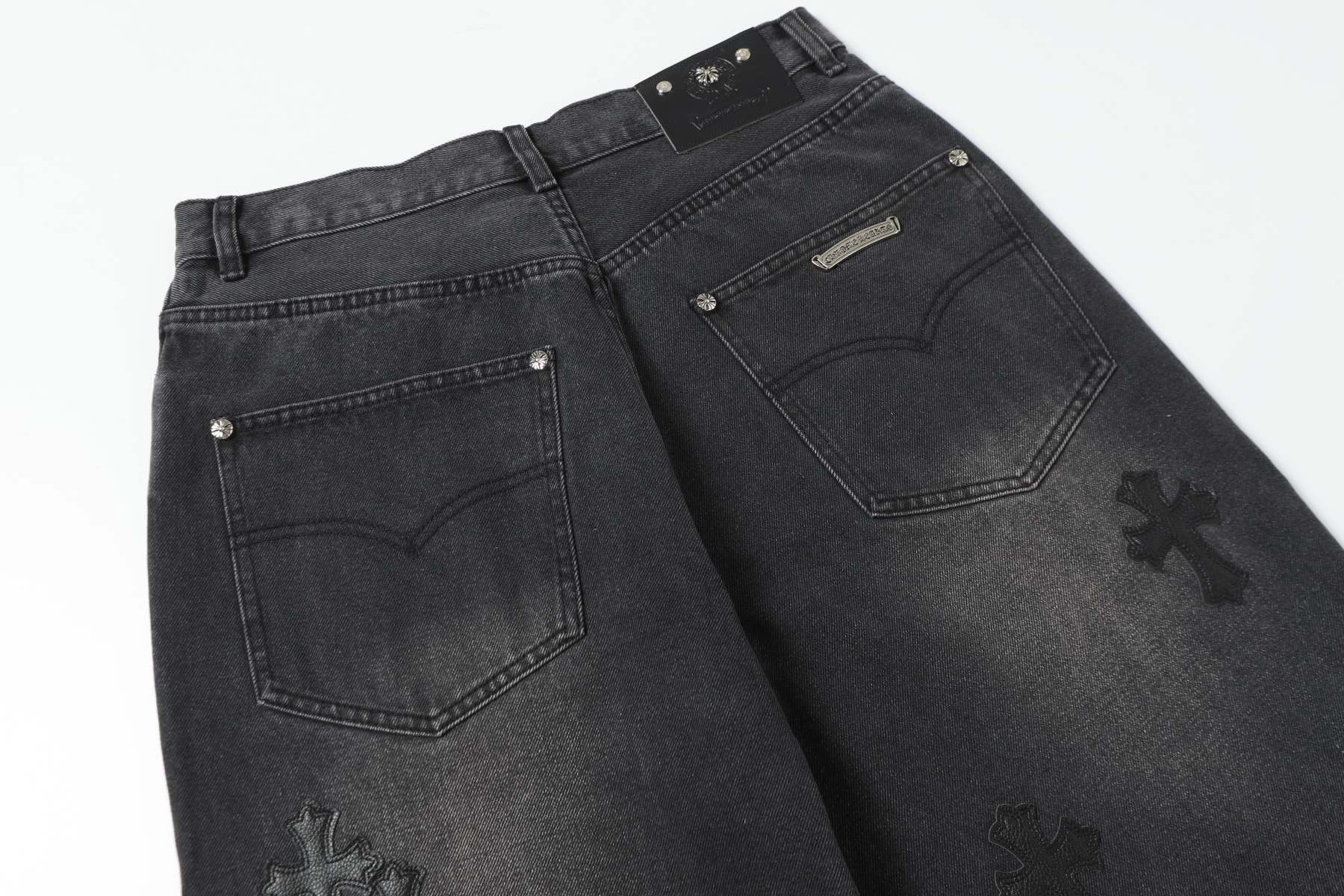 Chrome Hearts Black Cross Patch Grey Jeans