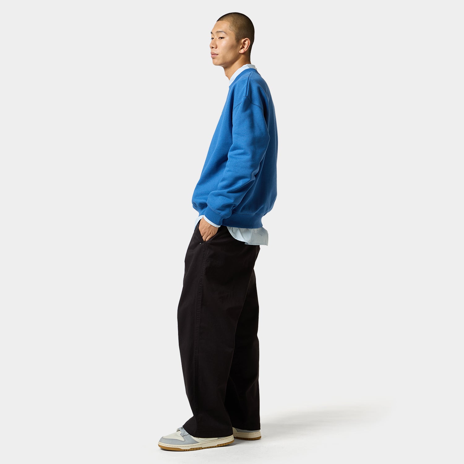 550G裏毛ワンウォッシュ仕様のコットンポリヘビーウエイト生地を採用し、身幅にゆとりを持たせたボックスフィットを特徴としており、長年にわたって愛用したくなるオーセンティックな一着に仕上げています。