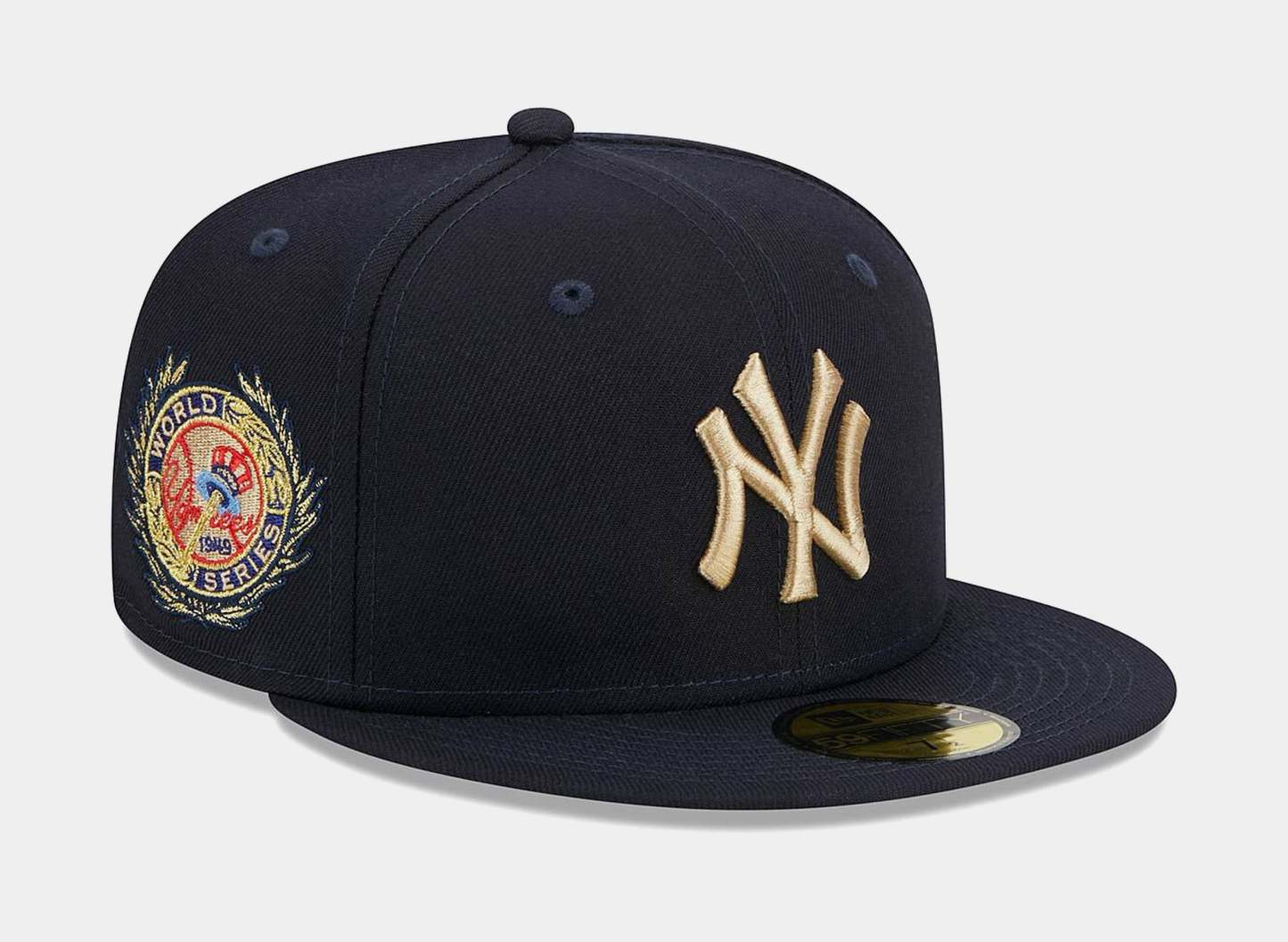 New Era 59FIFTY Fitted cap features a team color fabrication with an embroidered Yankees logo on the front, an embroidered Laurel Side Patch, an embroidered New Era logo on the side, and an embroidered MLB batterman on the back.