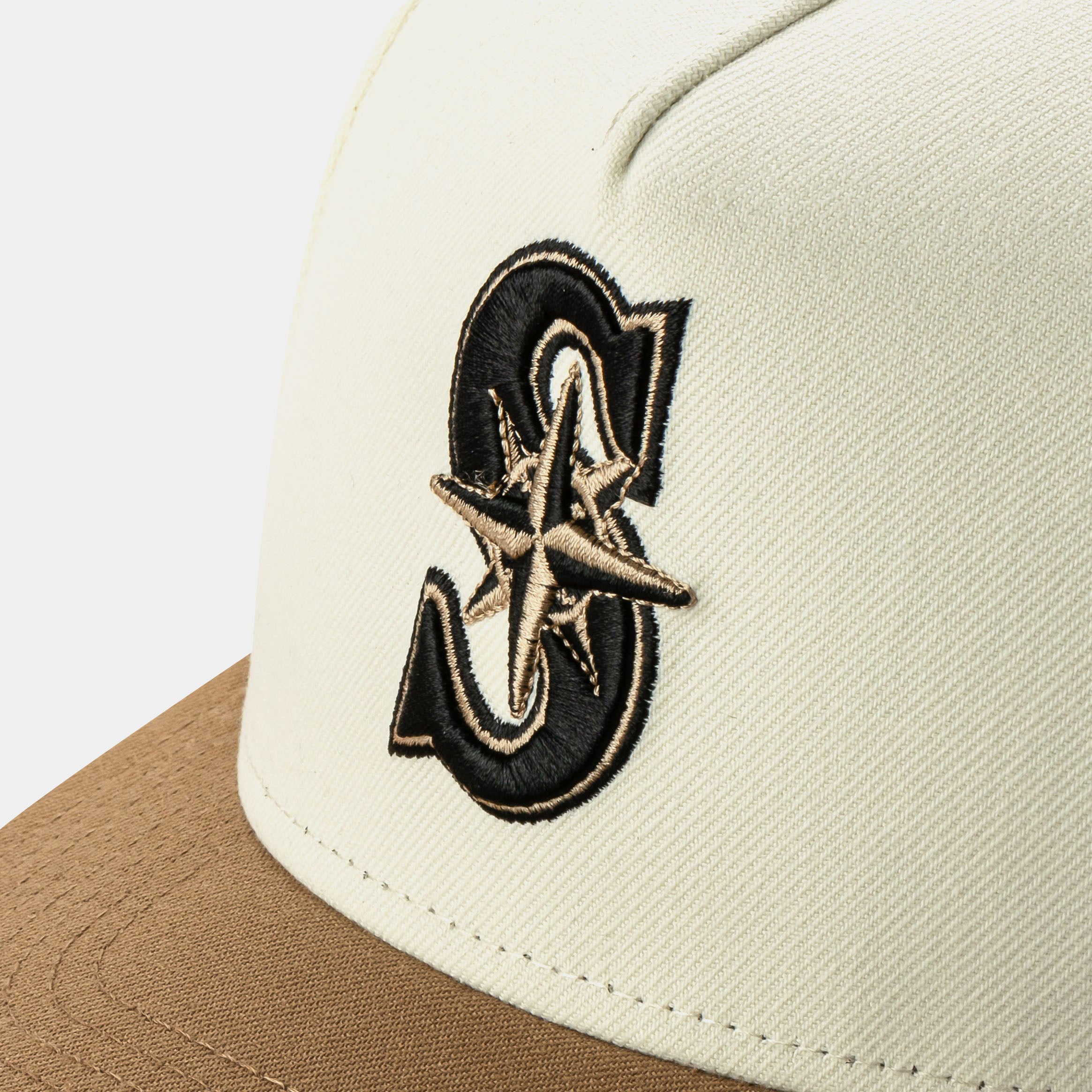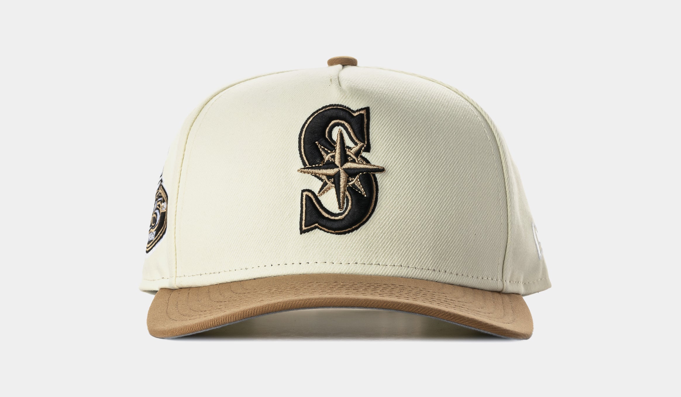 Step up your collection with the Shoe Palace Exclusive Seattle Mariners 950AF Snapback, a refined take on Seattle’s classic look. This hat features a cream crown with a tan visor, creating a clean and elevated aesthetic that stands out from traditional team colorways. The raised Mariners “S” logo is embroidered in black and brown for a premium contrast, while the 25th Anniversary patch on the side adds a touch of team heritage.