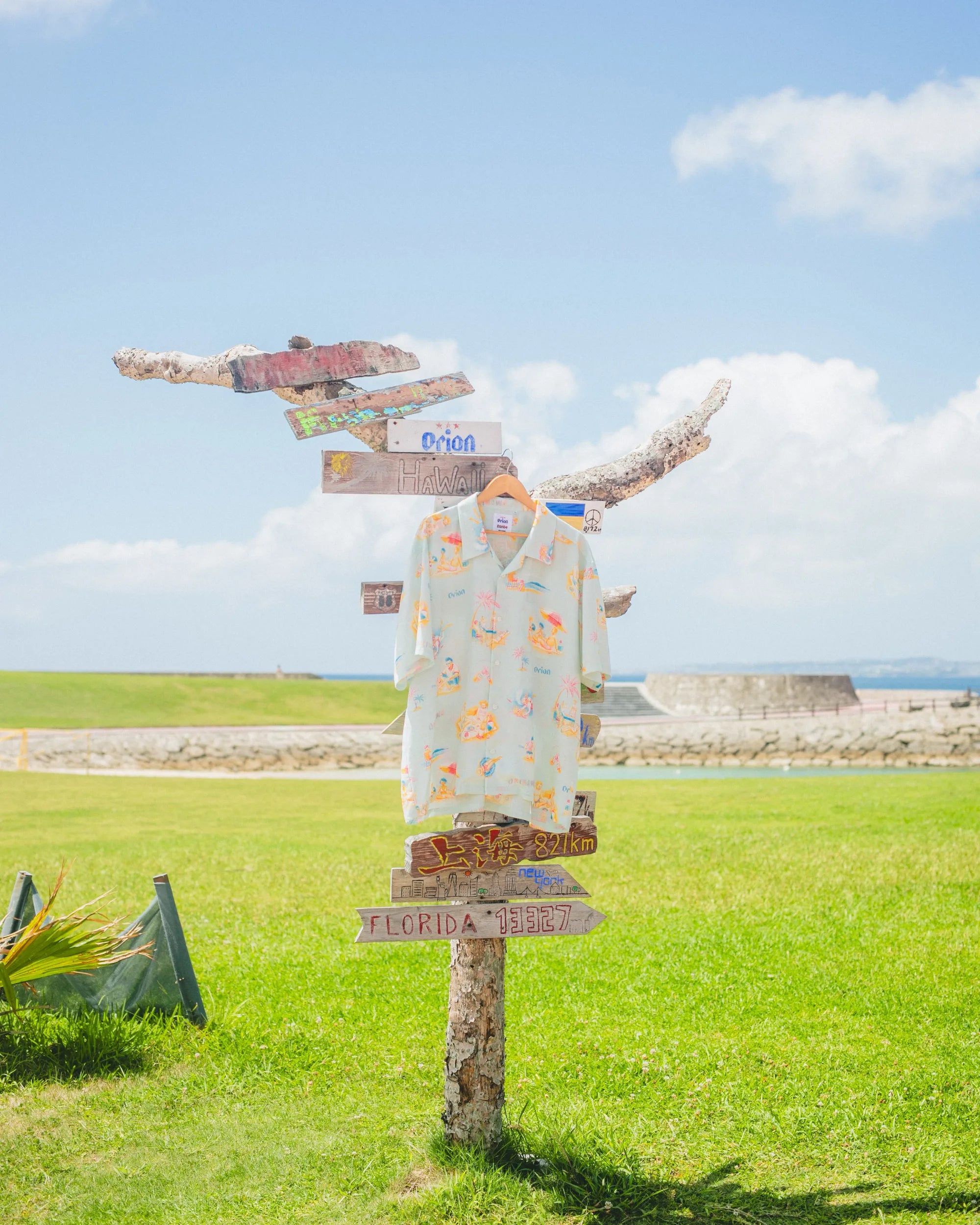その環境を支えるライフセーバーや、ビーチクリーンの様子もイラストに加え、沖縄が世界に誇る綺麗なビーチをみんなで楽しみ、これからもずっと守っていきたいという思いを込めて製作した1着。